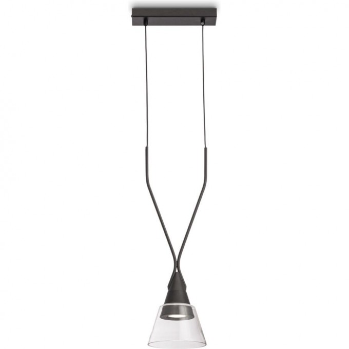 Сбалансированный и утонченный дизайн светильников основан на контрасте легкого прозрачного плафона из стекла и металлического корпуса, выкрашенного в черный цвет. Являясь полной противоположностью, детали светильника будто вытекают одна из другой. Лампа утоплена вглубь корпуса, что обеспечивает зрительный комфорт. Высота светильников регулируется длиной шнура.